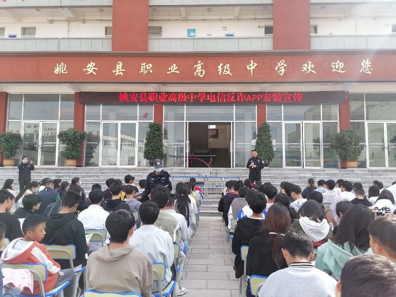 会后公安民警同志指导县职业高级中学全体师生用手机安装“国家反诈中心”APP,注册并开通预警防范功能,自我武装,让电信网络诈骗无可乘之机。