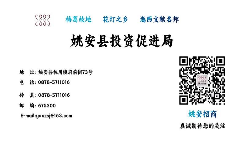 资源优势:姚安县属亚热带季风气候,年平均气温17.1℃,年平均降雨量569.3毫米,年平均日照时数2348.9小时,无霜期247天;年平均降雨产水量14.99亿立方米,年径流量4亿立方米。气候温和、日照充足、地势平坦、土壤肥沃、无工业污染,农业基础条件好。