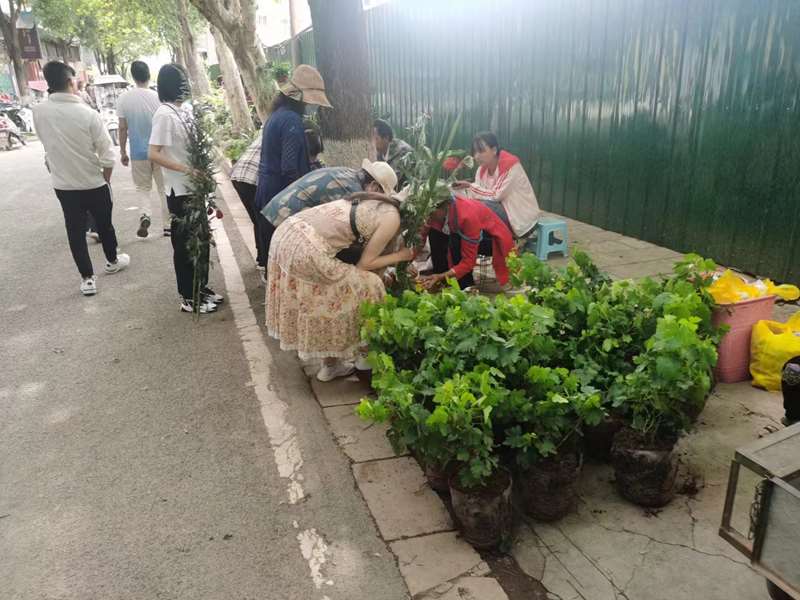 摆满了各种中草药、香囊和花草树木