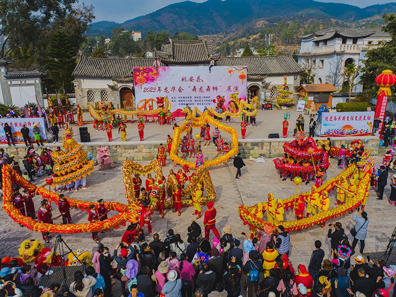 二月初八“龙华会”是姚安人一年一度的传统节日。每年的这一天,民间都有耍龙舞狮的习俗,祈祷龙的保佑,预示来年风调雨顺、五谷丰登。祈祷狮的保佑,增添祥瑞吉祥和平安。为增加今年龙华盛会节日气氛,县委、县人民政府精心组织举办、县文化和旅游局承办了舞龙舞狮展演活动。