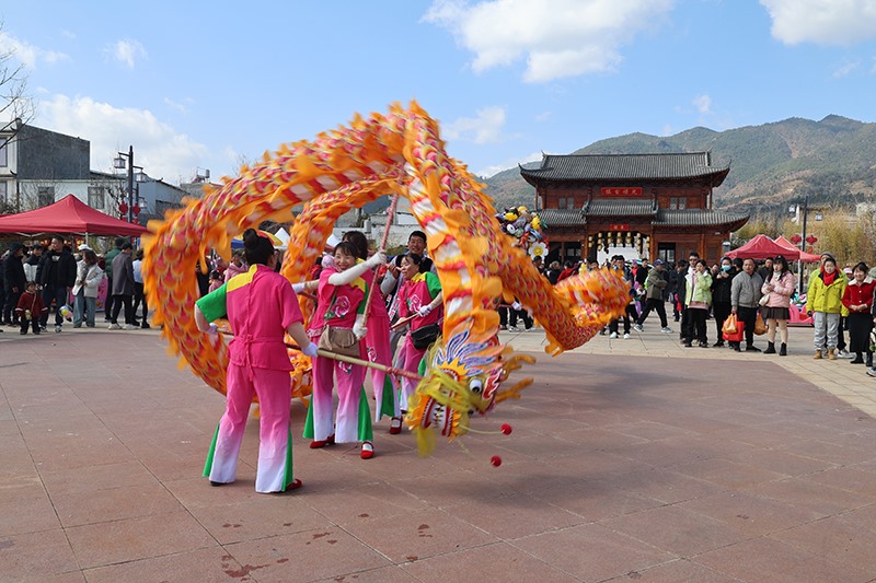 2025年春节,姚安县聚焦“非遗过大年”和“有一种叫云南的生活·火火楚雄—欢乐在景区”,围绕“看非遗、鉴文物、赏鲜花、品美食”开展了系列丰富多彩的节庆活动,浓浓的“年味”为景区增添了满满活力和人气。图书馆开展了“年味儿”摄影作品、“年味儿”少儿绘画作品展览;文化馆在光禄古镇组织开展耍龙舞狮活动,姚小花景区举办多场打铁花表演及烟花秀,光禄古镇“火树银花照新岁,流光溢彩庆蛇年”盛况在央视新闻频道1月31日《新闻直播间》播出;光禄福禄广场每晚开展篝火打跳活动;在光禄古镇高雪君祠,1月30日、31日大年初二、初三每晚7时30分,开展由县非物质文化遗产保护中心、县文化艺术团创作表演的文旅实景庭院剧《蓝蜻岭》演出,吸引了众多周边县市游客和当地群众围观,演出情况在云南日报刊发;在光禄高府林苑酒店举办土司宴,让古老的建筑与传统习俗相融合,重现历史场景。同时,全县9个乡镇也分别开展了各具特色的彝族左脚舞民间歌会、传统年货集市等活动,让外地游客纷纷前往体验特色年俗,带动文旅消费快速增长。