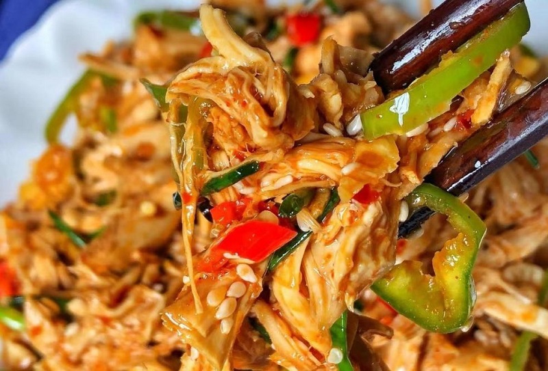 3.凉拌麻辣鸡丝。炎炎夏日,凉拌麻辣鸡丝成了解暑开胃的好风味,掺着秘制酱汁的鸡丝,口感鲜嫩丝滑,麻辣鲜香。