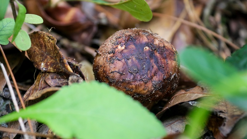 经验丰富的村民要克服深山原始、湿滑的采摘环境,和时间赛跑,赶在松茸开伞前采收,才能尽可能保留其营养和口感。
