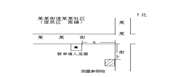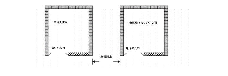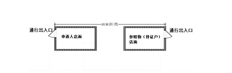 (一)新申请人与测量参照物之间无障碍的,以新申请人店面与参照物最靠近的两边之间的距离进行计算。
