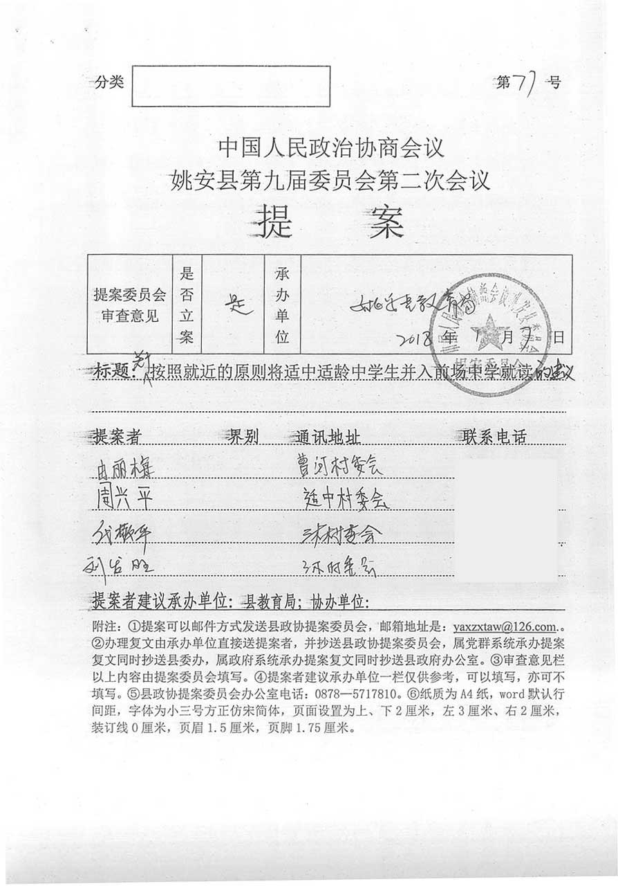 你们提出的《关于按照就近的原则将适中中学学生并入前场中学就读的建议》已收悉。你们所提的提案确实反映了当地人民群众的一些愿望,充分反映了你们对我县教育事业的关心和支持,对此,我们表示衷心的感谢!