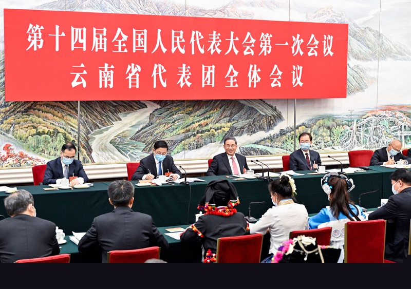 3月5日,中共中央政治局常委李强参加十四届全国人大一次会议云南代表团的审议。新华社记者 殷博古 摄