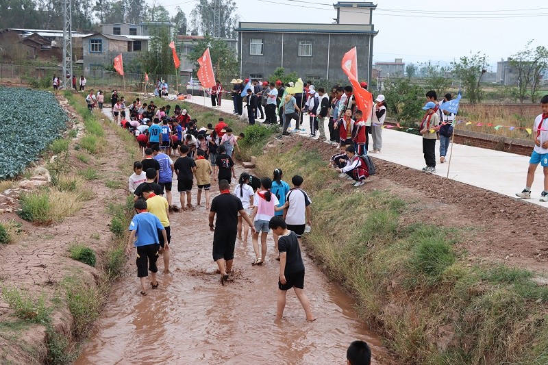 活动分为两个阶段。第一阶段是让学生走进红色课堂,缅怀革命先烈,懂得感恩,进行爱国主义教育;第二阶段是动手实践,让学生经历做饭、心脏复苏、摸鱼等实践活动,使其在泥土中学会耕耘,在烟火气中体味生活、感受最淳朴的丰收喜悦,培养学生团队协作能力和动手能力,体验到集体劳动的乐趣。