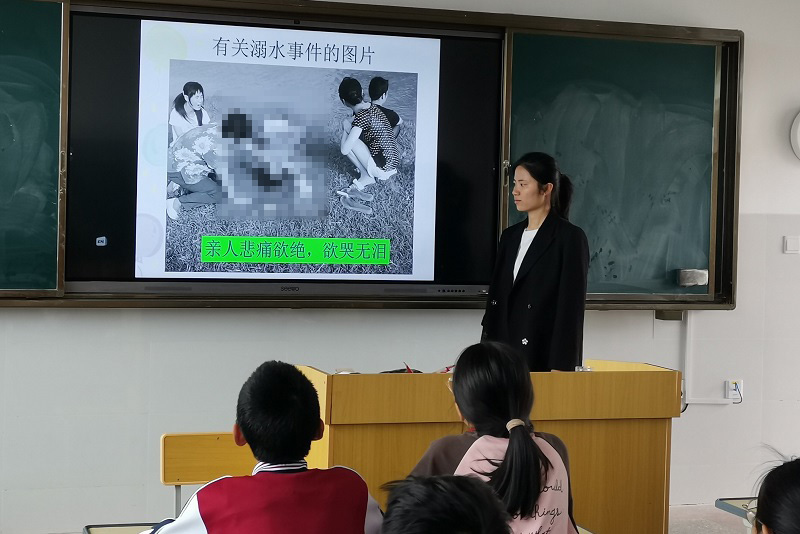 在防溺水安全教育主题班会上,老师利用多媒体课件、图片、故事给同学们讲解防溺水安全常识,一个个触目惊心的案例,一次次给师生们敲响警钟。