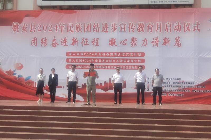 仪式上,县委常委、县委统战部部长徐勇致辞并宣布“2024年姚安县民族团结进步宣传教育月”活动启动。