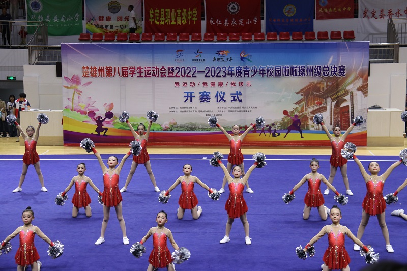 2023年4月28日至5月2日,由楚雄州教育体育局主办,中共姚安县委、姚安县人民政府承办,姚安县教育体育局、楚雄州体操协会协办,楚雄师院体育与健康学院支持的楚雄州第八届学生运动会暨2022-2023年度青少年校园啦啦操州级总决赛在姚安县圆满举办,来自全州8县2市、48所学校、49支代表队,近1100名运动员参加总决赛,创下迄今全州啦啦操参赛规模最高纪录。