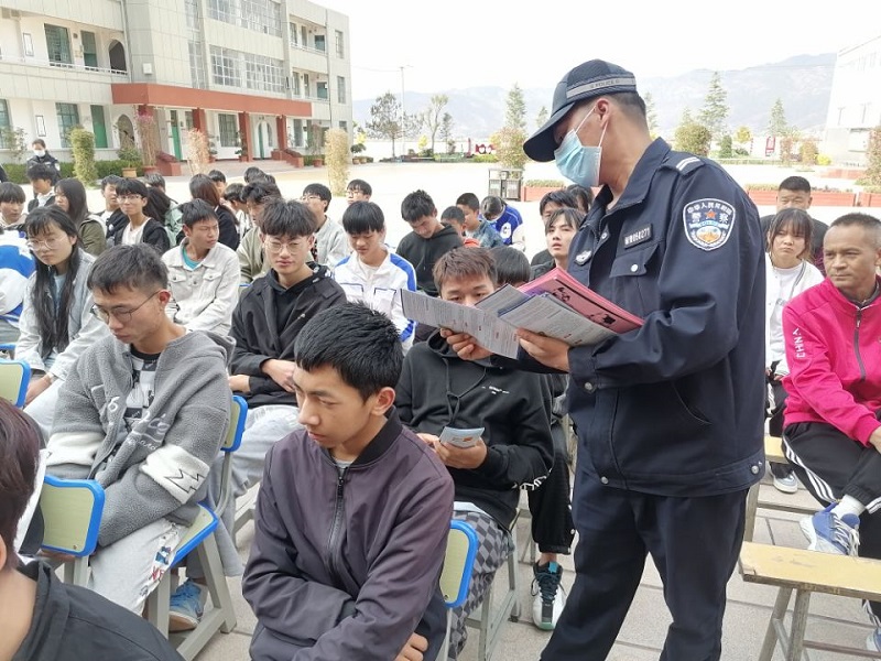 3月29日下午,县公安局禁毒大队周贤一行应邀到县职业高级中学开展“无毒示范单位”创建禁毒知识讲座暨“国家反诈中心”APP安装宣传活动。