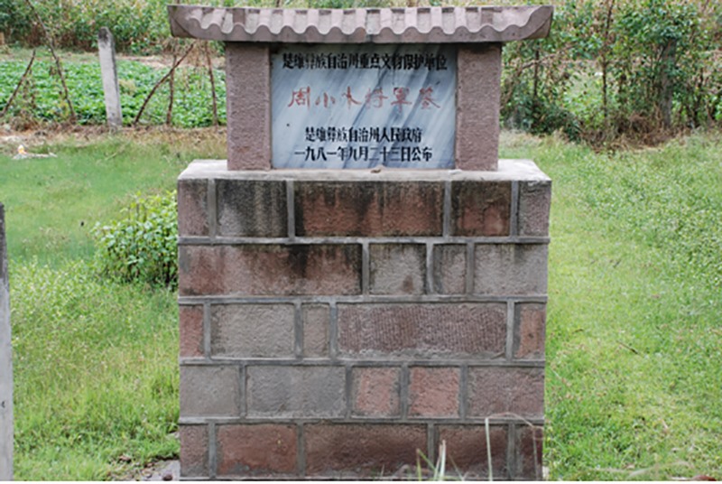 周·小卜将军墓,在县城北三公里下新屯村北,现龙岗卫生院门口。现存墓碑为清光绪二十四年(1898)所立。周·小卜将军墓是战国末期庄蹻开滇的重大历史见证和重要实物资料。1981年被楚雄彝族自治州人民政府公布为州级重点文物保护单位。(何晓霞)