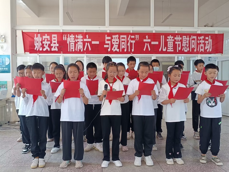 2023年5月30日上午,县委副书记何媛媛、栋川镇党委书记郑建华、县妇联常务副主席张金莉、县红十字会常务副会长张朝功、共青团姚安县委副书记朱晓燕等一行带着节日的问候、带着对师生的殷切期望到姚安县马草地小学开展“情满六一 与爱同行”六一儿童节慰问活动。为同学们送去节日的祝福,鼓励孩子们要励志读书,争做新时代好少年。