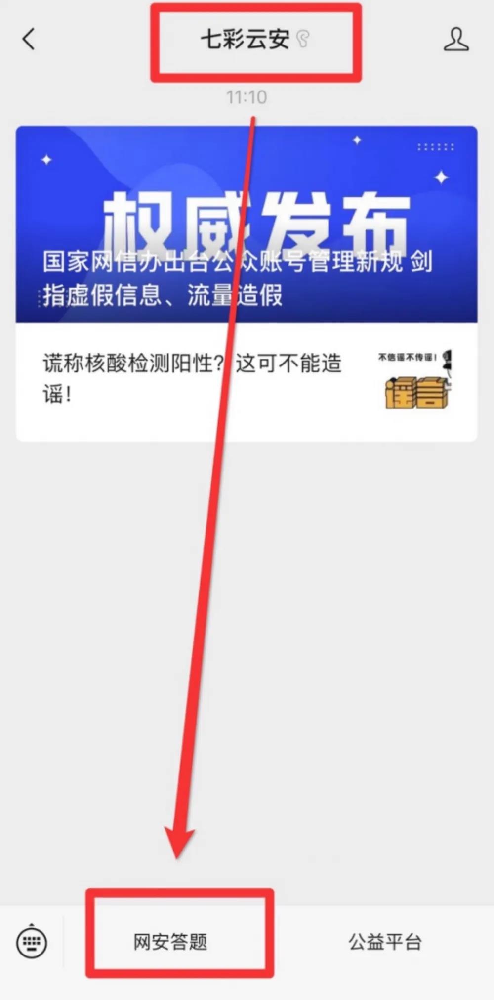 本次积分赛比赛时间为10月4日至10月31日,网友关注“七彩云安”微信公众号,进入公众号点击底部菜单栏“网安答题”即可进入比赛,参与答题。
