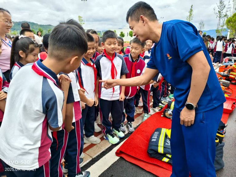 为进一步加强学校消防安全管理工作,切实提升师生消防安全意识与应急处置能力,有效预防和减少校园火灾事故,保障广大师生生命财产安全,维护校园安全稳定的良好秩序,姚安县栋川小学于2025年9月18日联合当地消防救援局,组织开展了秋季学期校园消防安全演练活动。