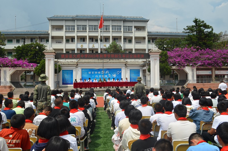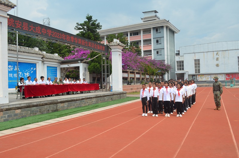 为增强初中学生纪律意识、效率意识、责任意识、国防意识,培养自主能力、团队精神和树立总体国家安全观。经姚安县人民武装部军事科、姚安县教育体育局批准,2023年9月4日至8日,由中国人民解放军驻姚某部派出9名教官对姚安县大成中学2023级新生开展了为期一周的军训。