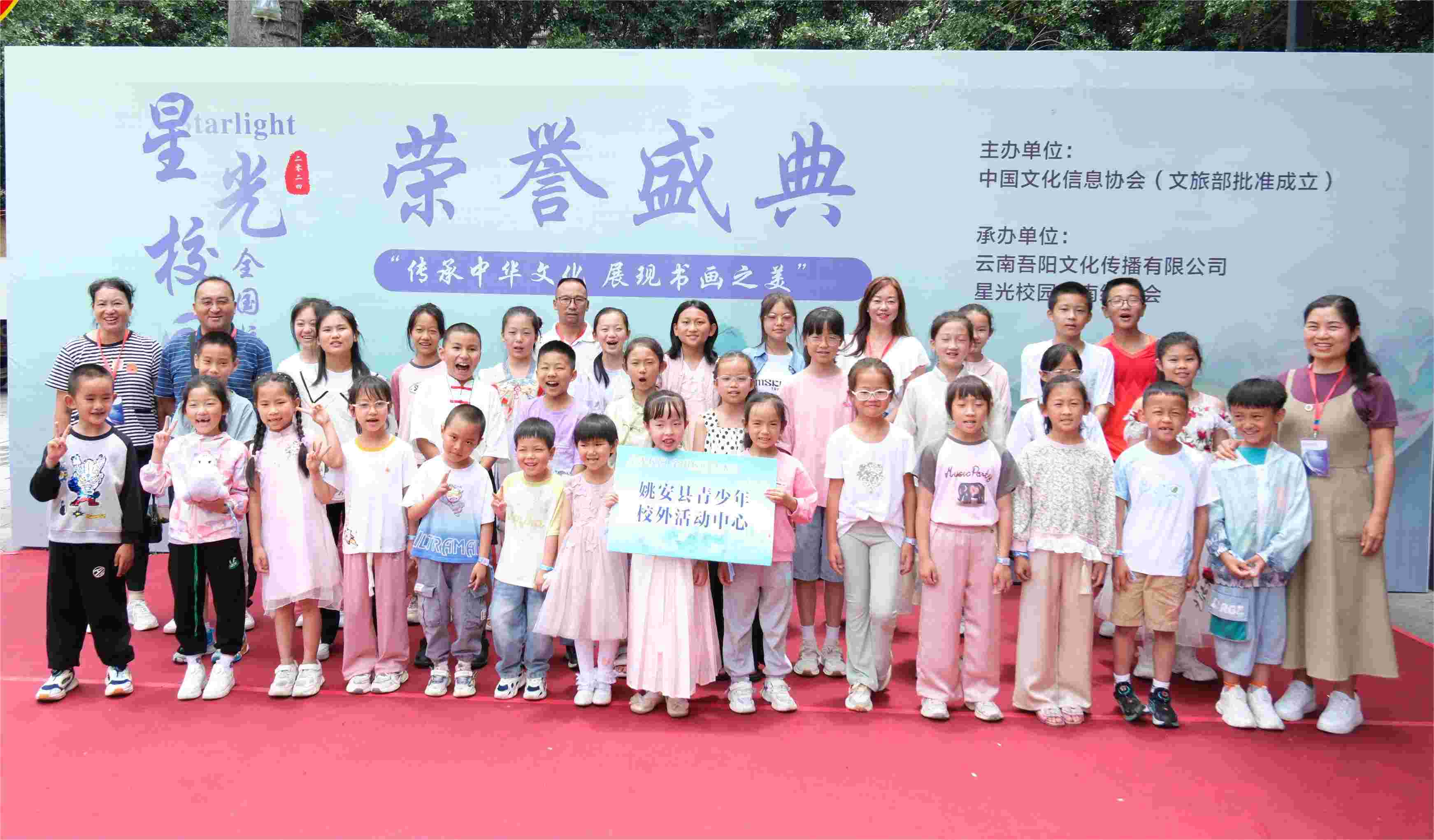 赵鹏程同学荣获特金奖晋级参加北京全国书法大赛、张琪等8人荣获儿童创意画、色彩类金奖;李妍姿等10人荣获软笔书法儿童B组金奖,其余同学获得银奖。姚安县青少年校外活动中心陈建荣、向键、钮彩芝、邵美萍四名专业教师荣获明星指导教师称号,姚安县青少年校外活动中心被授予“全国青少年教育金牌单位”“全国青少年艺术人才培训基地”称号。