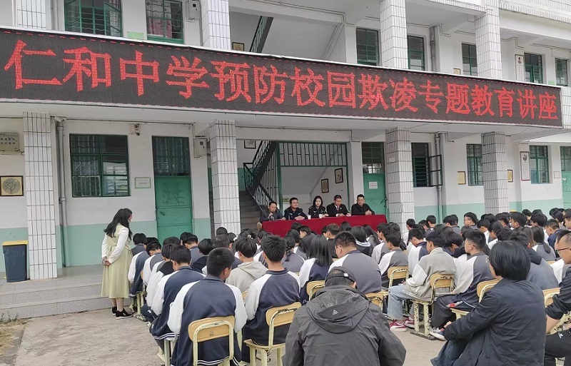 为拒绝校园暴力,推进依法治校,进一步增强师生法制观念,增强守法意识,养成学法守法的好习惯。4月1日,县仁和中学邀请县人民法院李爱明法官和县栋川派出所社区中队长武杨馨月到校对全体师生进行法制讲座。