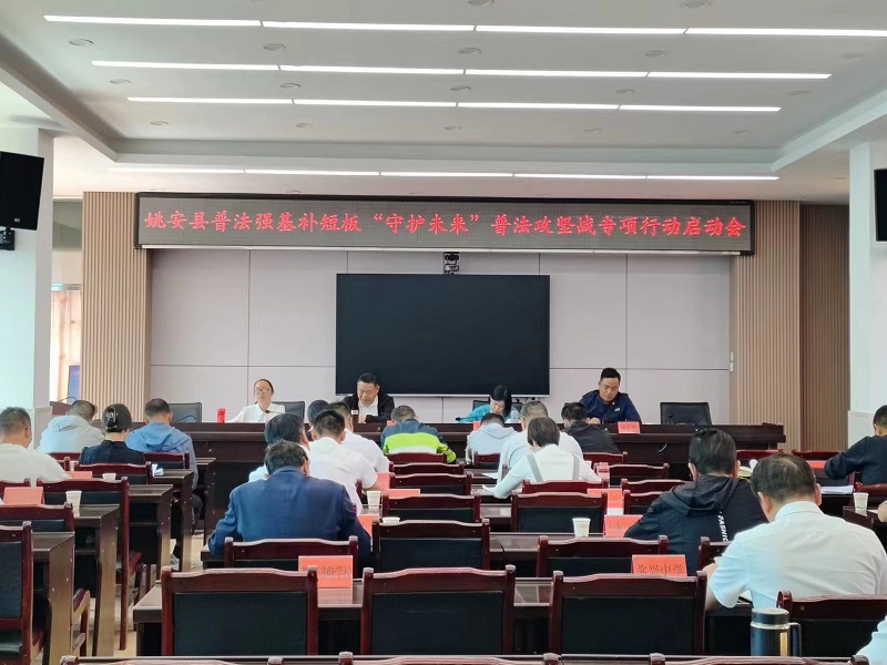 2023年4月12日下午,全县普法强基补短板“守护未来”普法专项行动启动会在姚安县教育体育局召开。省州专项普法工作组全体成员,各乡镇中心小学、中学、县属各学校校(园)长以及县教育体育局教育督导股全体成员参加会议。