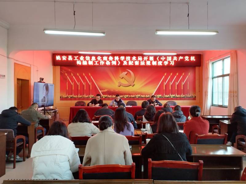 2023年11月27日,姚安县工业信息化商务科学技术局召开专题会议传达学习《中国共产党机构编制工作条例》,全体干部职工参与集中学习。