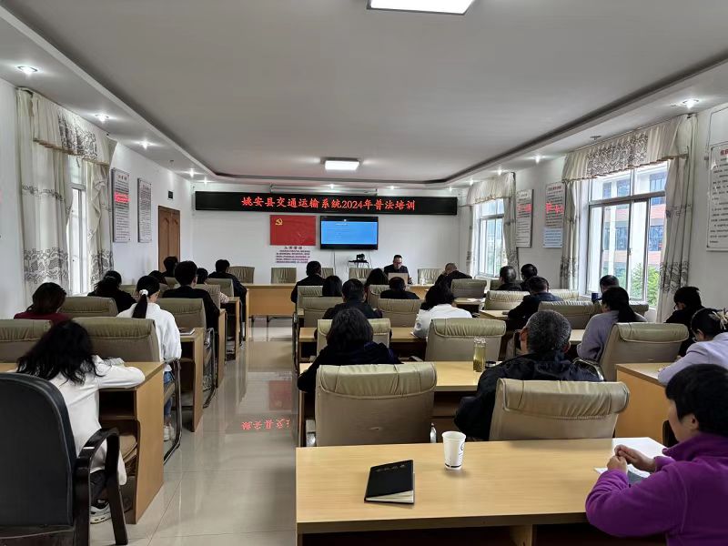 为进一步提高姚安县交通运输系统工作人员法律知识水平,增强法律观念,规范执法行为,2024年10月21日姚安县交通运输局邀请云南兴滇(姚安)律师事务所王云勇律师对全体干部职工开展了普法培训,对习近平法治思想和《中华人民共和国行政复议法》《中华人民共和国安全生产法》《云南省社会信用条例》等法律法规进行了深入解读,针对交通运输行业特性,以案释法、以法论事,对工作中容易产生法律风险的内容进行了重点培训。