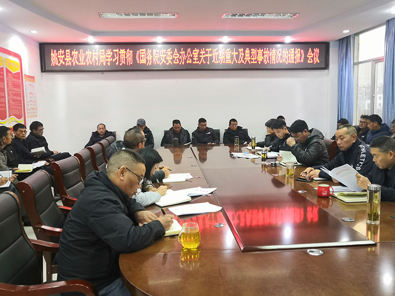 近日,姚安县农业农村局召开安全生产专题会议,学习贯彻《国务院安委会办公室关于近期重大及典型事故情况的通报》及省、州、县相关文件精神,并对下一步安全生产工作做出了具体部署。局机关全体人员、局属各单位负责人参加会议。