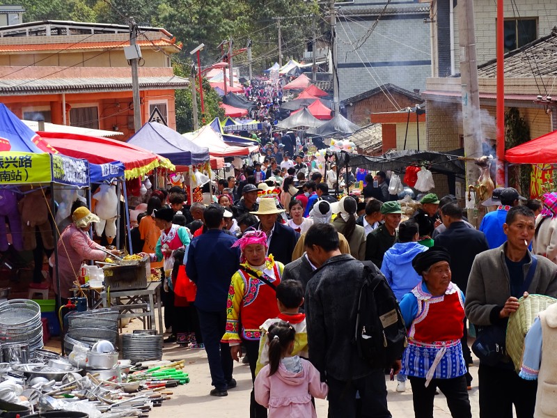 在民族团结商贸街上,大家挑选着琳琅满目的服饰、日用品及农具,品尝美食。跟随着彝家小调节奏,大家手牵手,肩并肩跳起左脚舞,呈现出一派喜庆、欢乐、祥和的节日氛围。