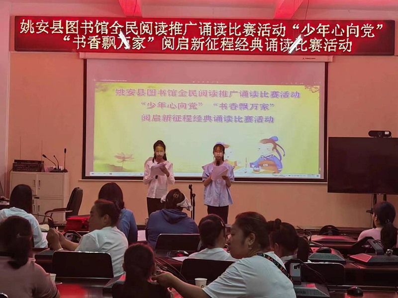 为了进一步强化对少年儿童的思想引领和价值观塑造,进一步推动姚安县全民阅读活动纵向深入,营造“多读书、读好书”的文化环境。2023年7月14日晚上7点,姚安县图书馆举办了“少年心向党”“书香飘万家”阅启新征程经典诵读比赛。