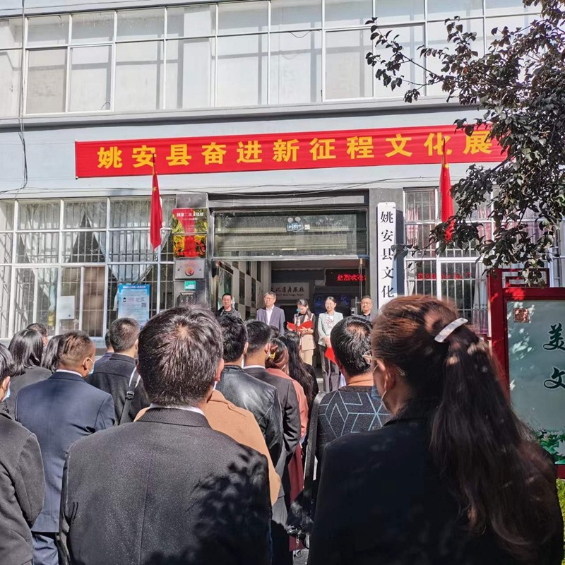 开幕式由县委宣传部长郑文梅主持,县委副书记何媛媛参加了开幕式并讲话,县人大、县政协和县级机关部分单位180余人参加了开幕式并参观主题展览。县委副书记何媛媛在姚安县奋进新征程文化展上讲,“姚安历史悠久,风光秀丽,人文荟萃,文化底蕴深厚。广大文艺工作者用彝绣展精彩、妙笔著华章、摄影现欣荣、剪纸庆未来、水墨写丹青抒发我们社会各界心怀中国梦,情系家国的赤子之情。广大文艺工作者从不同角度、以不同方式展示姚安的自然、人文、风俗以及近年来经济社会发展成就的描绘。生动展现新时代,各族干部群众团结奋斗的幸福生活和美好精神,为党的二十大这一历史性盛会召开营造昂扬向上、奋发进取的文化氛围,以实际行动表达文艺界对党的二十大真诚献礼。”