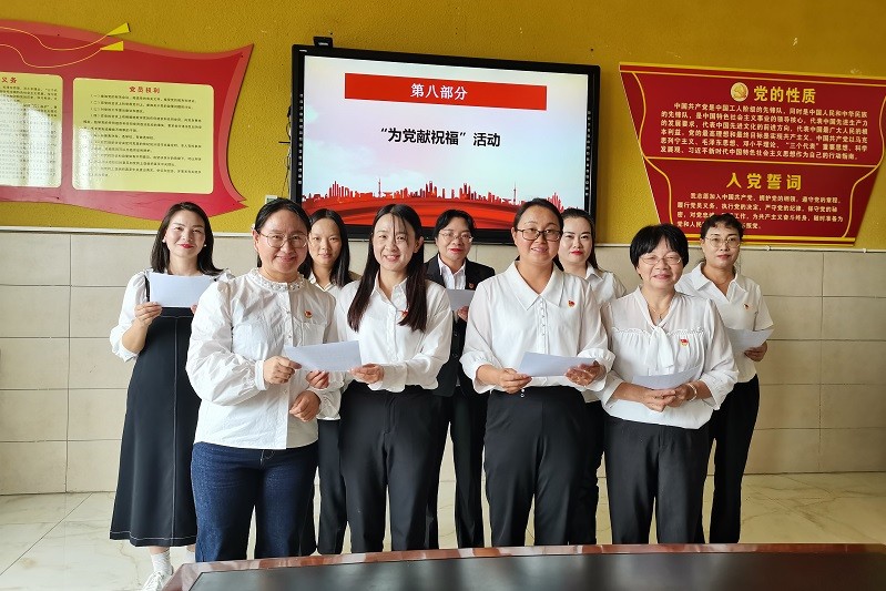 最后,学校全体党员用最真挚的话语,向党献上最美好的祝愿,愿祖国繁荣昌盛,党的事业蒸蒸日上。