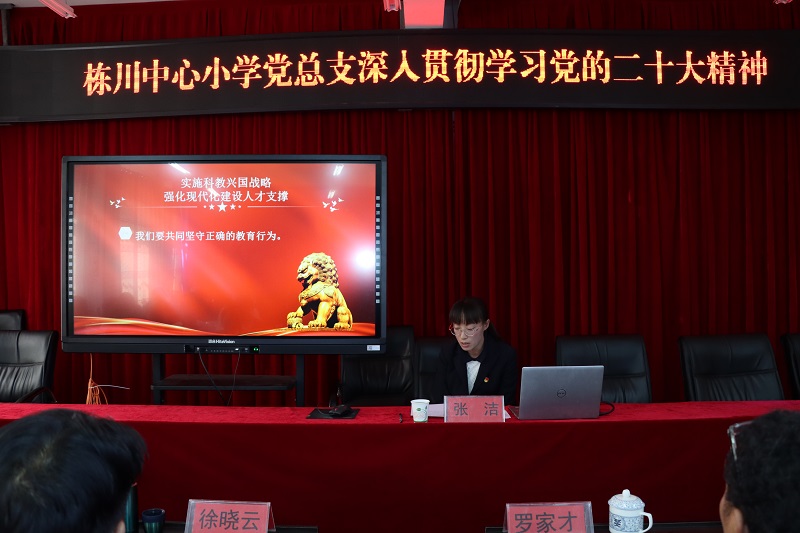 党课由栋川中心小学党总支书记张洁主讲。栋川中心小学领导班子、各小学校长、幼儿园园长30余人参加了此次活动。