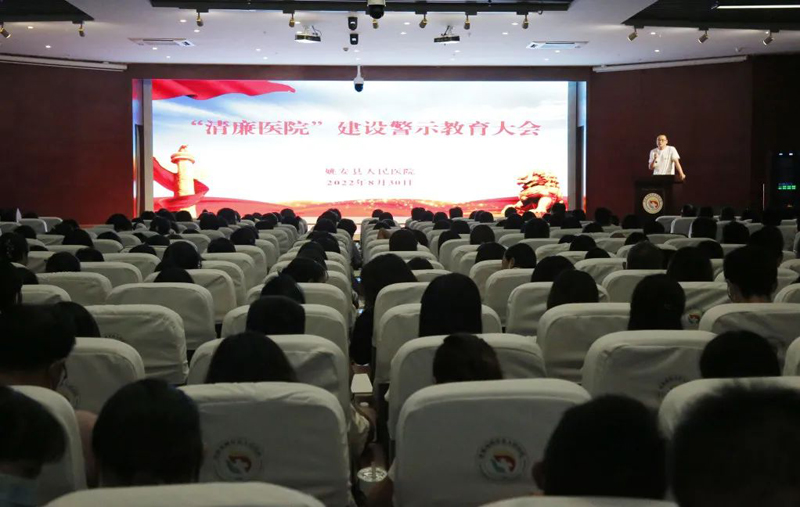 为充分发挥以案促改、以案促治、以案促建在“清廉医院”建设中的推动作用,坚定不移推动全面从严治党和党风廉政建设向纵深发展,2022年8月30日,姚安县人民医院在多媒体报告厅组织召开“清廉医院”建设警示教育大会,全院干部职工、妇计中心、医共体各分院院长及部分职工、进修及实习同学参加会议。