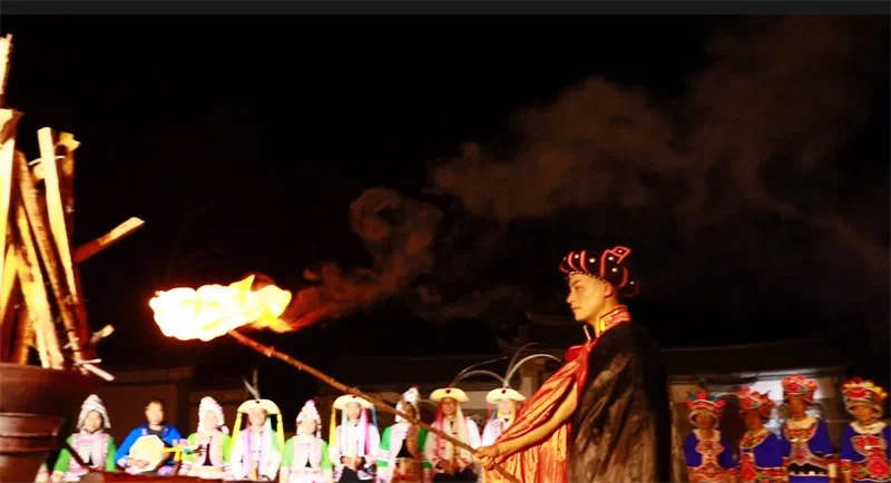 在夜晚神圣的祭火仪式上,游客与彝家男女青年手牵着手,大家围着熊熊篝火,伴着优美的旋律跳起了欢快的左脚舞。篝火周围是涌动的人流,男女老少在篝火的映照下,脸庞是红彤彤的,心情是飞扬的……