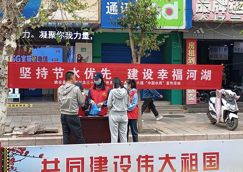 为深入贯彻落实党的二十大精神,积极践行“节水优先、空间均衡、系统治理、两手发力”的治水思路,认真领会水是重要的自然资源,水的合理利用和有效保护对于支撑经济社会高质量发展和维系良好生态环境具有重大意义。3月22日下午,姚安县水务局围绕“强化依法治水携手共护母亲河”的宣传主题,组织干部职工数10人到栋川镇西正街设立了“世界水日”“中国水周”宣传点开展宣传活动,悬挂横幅标语2幅、接待前来咨询群众100人余(次),向过往群众发放《中华人民共和国水法》(节选)、《中华人民共和国水污染防治法》(节选)、《中华人民共和国长江保护法》(节选)、《节水小妙招》等宣传材料共2000余份、节水宣传手提环保袋100余个,对有咨询的群众,宣传工作人员都积极热情地给予答复,多方面向群众宣传水环境保护知识、节水方法、节水常识,让更多群众认识到节水的重要性。并在办公楼门口电子显示屏滚动播放宣传标语,拉开了全县“世界水日”“中国水周”宣传活动序幕。全县9个乡镇也围绕活动主题开展宣传活动,使更多的群众参与到水资源节约保护中来。(蔡雪丽)