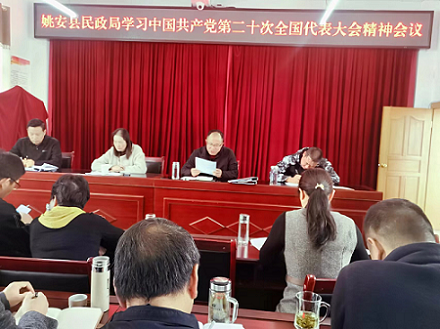 10月24日上午,姚安县民政局党组书记、局长陈星星组织民政干部职工认真学习贯彻党的二十大精神。