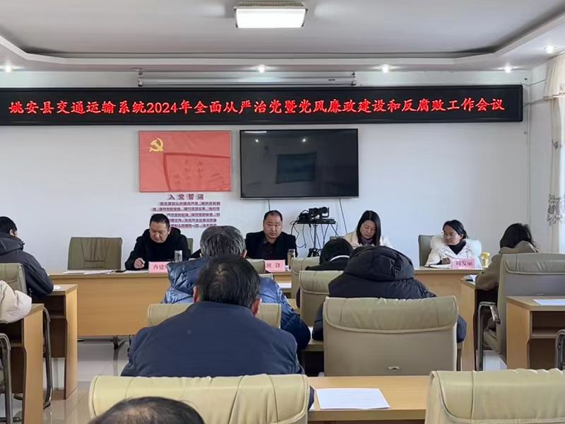 会议传达学习习近平总书记在二十届中央纪委三次全会上的重要讲话精神及二十届中央纪委三次全会、省纪委十一届四次全会、州纪委十届四次全会、县纪委十四届四次全会精神和《中共楚雄州交通运输局党组关于落实省委常委带队开展党风廉政建设责任制检查考核推动重点工作清单专项治理工作方案》,并对姚安县交通运输系统2024年全面从严治党暨党风廉政建设和反腐败工作进行安排部署。