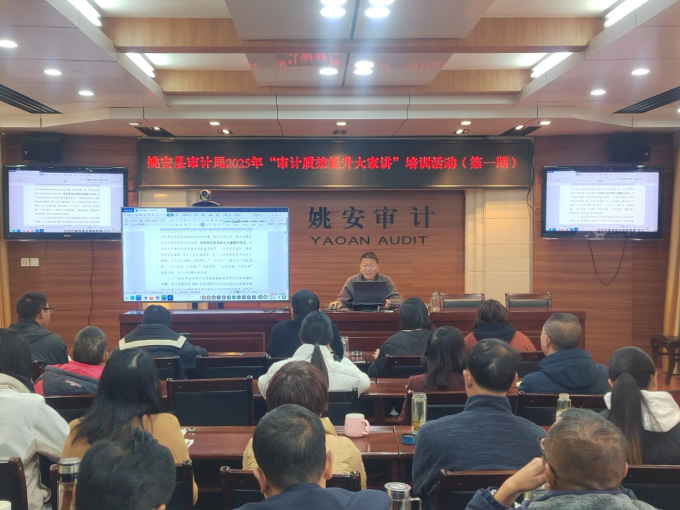 为激发干部职工的学习热情,提升审计干部业务能力水平,2025年,姚安县审计局组织开展了“审计质效提升大家讲”活动,由全局22名干部职工分四期轮流授课,全局干部职工参加培训。