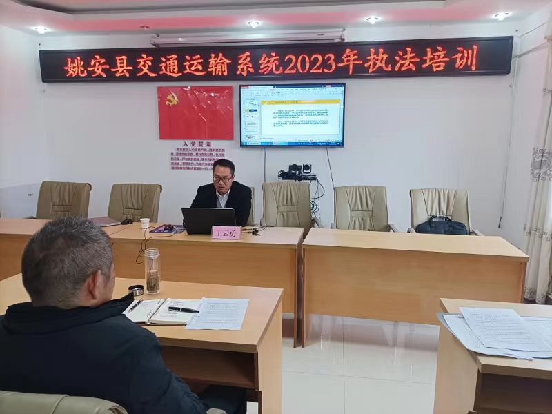 为进一步提升交通运输系统干部职工对相关法律法规掌握和运用,形成学法、知法、守法、用法贯穿工作生活,进一步提高交通运输执法规范性和管理严谨性,11月20日上午,姚安县交通运输局开展2023年执法培训会,邀请云南兴滇(姚安)律师事务所主任王云勇对交通运输系统全体干部职工开展行政执法专题培训,全县交通运输系统全体干部职工和楚雄州交通运输综合行政执法支队姚安大队共计35人参加会议。
