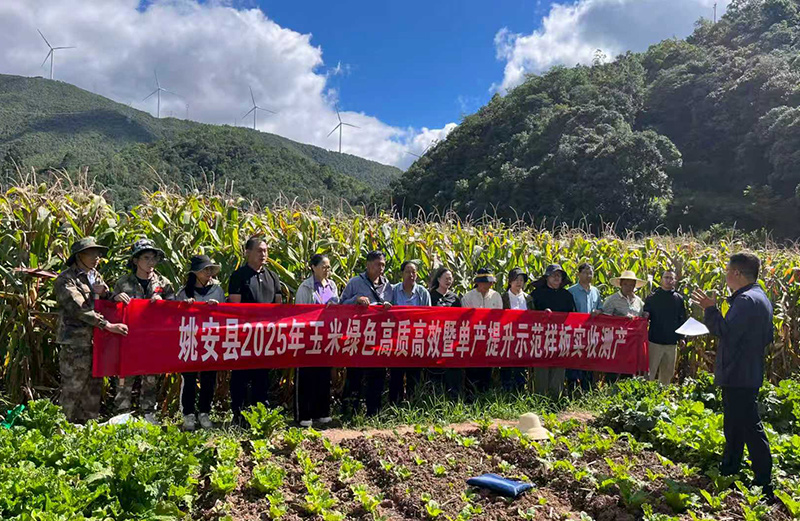 近日,姚安县农业农村局邀请省、州、县有关专家组成专家组对县农业技术推广中心在前场镇实施的2025年玉米绿色高效暨单产提升示范项目百亩核心示范田进行田间实收测产。专家组听取项目开展情况汇报,巡田查看了示范片田间长势,按照《云南省主要粮油作物测产工作方案》在好、中、差三个产量层次各随机选取3个田块进行现场实收测产,最终加权平均亩产720.2kg。专家一致认为:姚安县实施的2025年玉米绿色高质高效暨单产提升示范项目百亩核心示范片,关键技术措施落实到位,示范效果显著,圆满完成了预定的各项指标。(陈俊吉)
