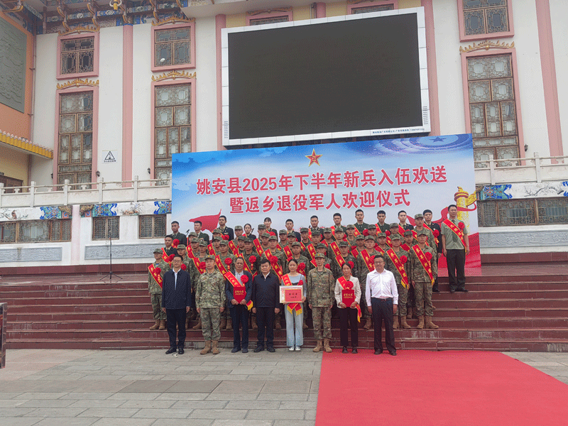 近日,姚安县2025年下半年返乡退役军人欢迎仪式在县城梅葛广场隆重举行。军地领导、志愿者代表、拥军企业负责人及退役军人亲属齐聚一堂,迎接荣归故里的退役军人,向他们致以崇高敬意和家乡人民的诚挚问候。