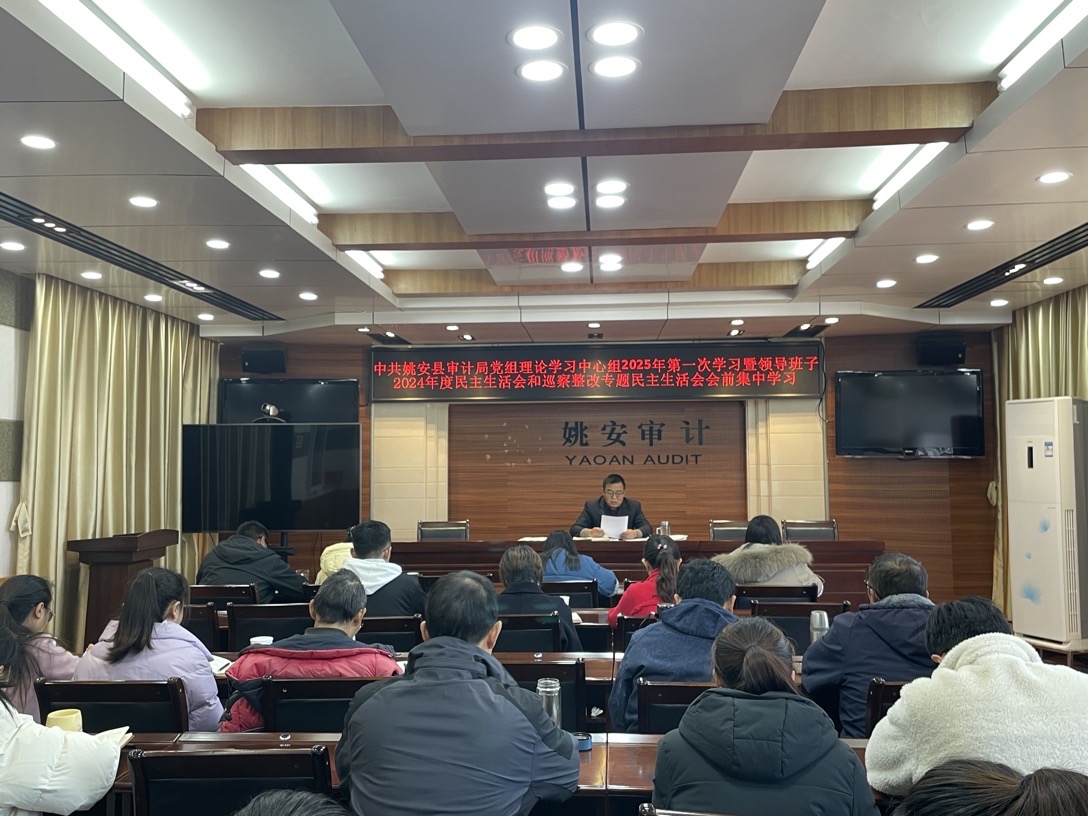 近日,姚安县审计局召开了2025年第1次党组理论学习中心组学习暨2024年民主生活会会前学习,此次学习会围绕学习贯彻习近平新时代中国特色社会主义思想和党的二十大、党的二十届三中全会精神、关于党的建设重要思想、关于党的自我革命的重要思想以及关于全面加强党的纪律建设的重要论述,习近平总书记关于巡视整改的重要指示精神、习近平总书记在中央政治局专题民主生活会上的重要讲话精神等主题展开学习,通过学习研讨进一步提升党组成员的政治站位,增强党性修养,同时为开好民主生活会做好充分准备。