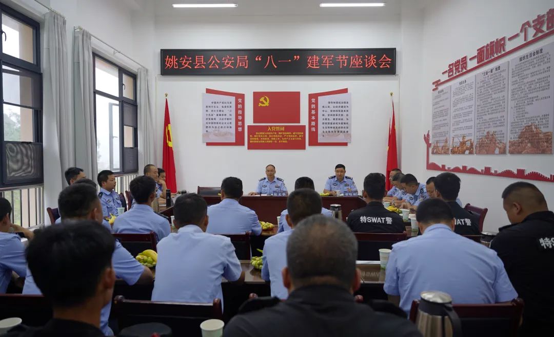 八一为弘扬拥军优属优良传统,激励引导广大退役军人立足岗位、忠诚履职、担当作为、永葆本色,在“八一”建军节来临之际,姚安县公安局组织召开“八一”建军节座谈会。副县长、县公安局党委书记、局长包文华出席会议并讲话,来自全县公安机关不同工作岗位的退役军人参加了座谈会。