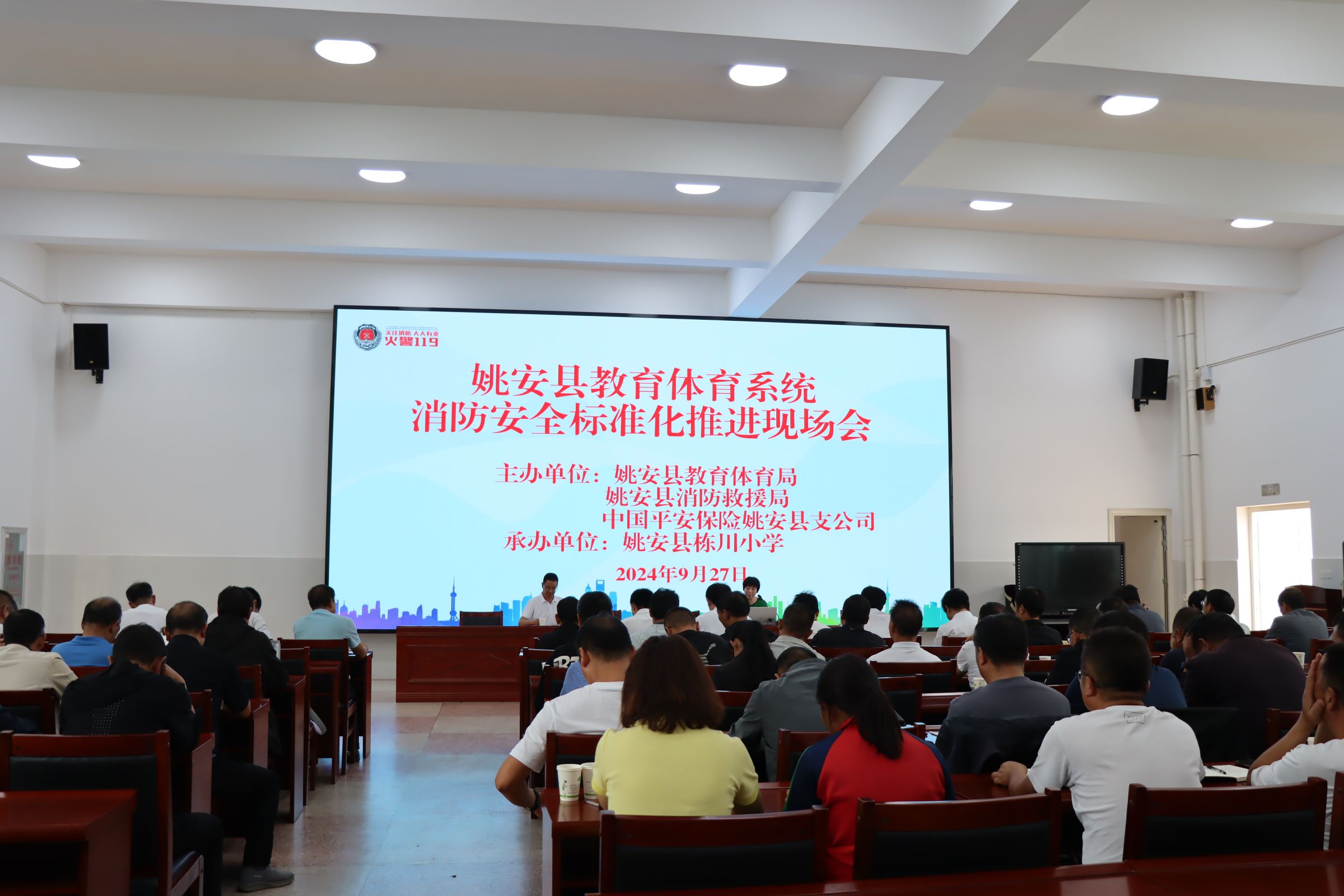 为提高学生消防安全意识,增强学生消防突发事件的逃生、自救能力,确保学校应急工作机制快速、高效有序进行,确保师生生命安全,9月27日上午,全县中小学、幼儿园校长、学校安全工作负责人100余人在栋川小学召开2024年消防安全标准化现场推进会,姚安县消防应急救援大队担任技术指导,到现场观摩学习,姚安县教育体育局有关负责同志参加此次会议。