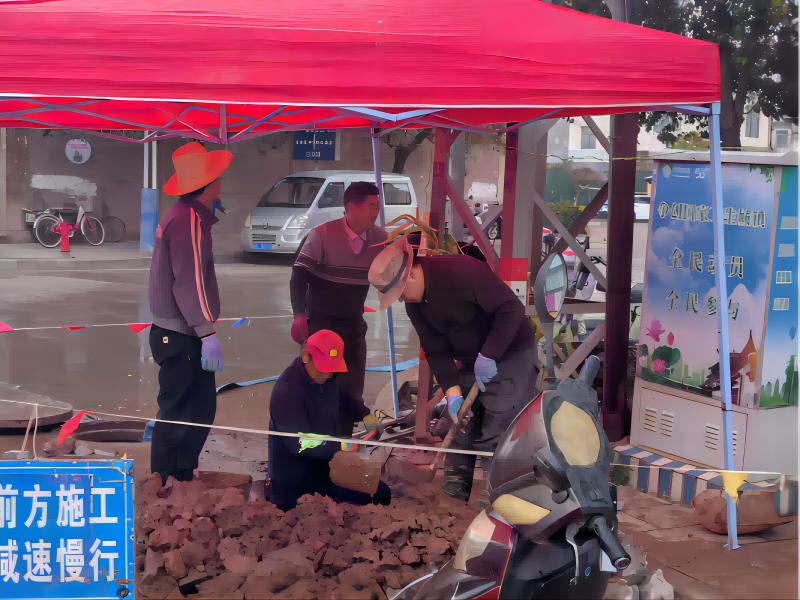 2月2日夜间,姚安县供排水有限公司探漏人员在老秧桥发现暗漏一处,他们在漏点位置做好标记,并上报公司领导组织抢修。该点位位于路口,为保证精准抢修,不影响居民正常出行,采取人工开挖方式,抢修人员利用锹、铲等各类工具开展坑道挖掘工作。他们放弃周末休息,在雨中加快抢修进度,完全不顾坑道内冰冷的积水,手握着冰冷的工具,一下一下地挖掘着。在全体人员共同配合下,很快清理出漏点。通过探漏精准定位,快速抢修,不仅降低了管网漏损率、减少了水资源浪费,也为春节期间供水不断、安全供水、水压达标奠定良好基础。(徐文雨)