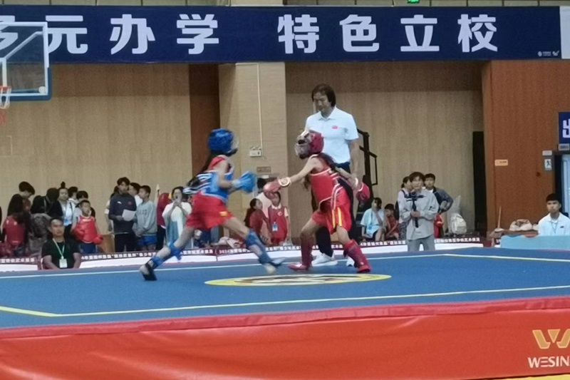 县思源实验学校派出学校武术散打课后服务社团的20名学生参加比赛。赛场上,县思源实验学校队员如同猛虎下山,势不可挡。