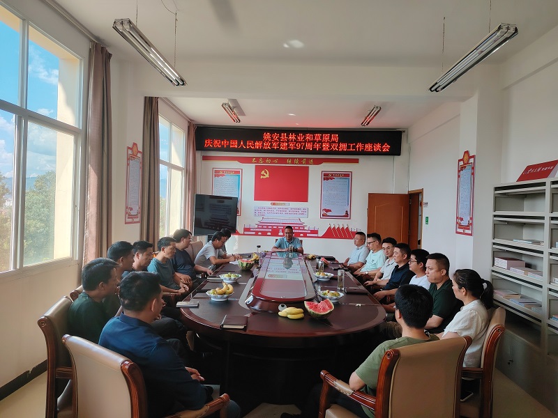 为弘扬拥军优属的优良传统,加强与退役军人的沟通与联系,在中国人民解放军建军97周年之际,8月1日下午,县林草局组织召开了庆祝中国人民解放军建军97周年“八一”建军节座谈会。局领导班子成员与16名退伍老兵齐聚一堂,共同庆祝这个特殊的节日。