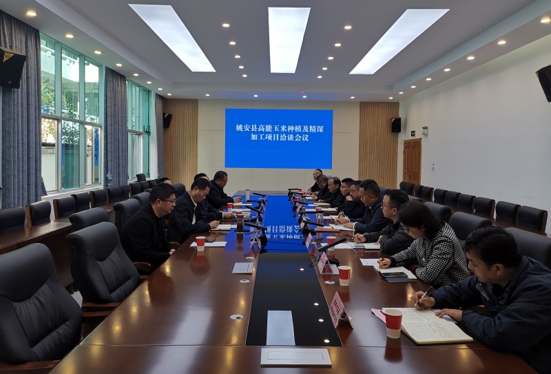 2024年11月22日上午,深圳市亚西亚实业有限公司胡有文董事长一行到姚安县洽谈高产能玉米种植及精深加工项目,并就下步拟在姚安开展高产能玉米品种规模化种植、玉米增产增收、玉米桔杆SOD多肽提取精深加工等相关事宜进行洽谈。