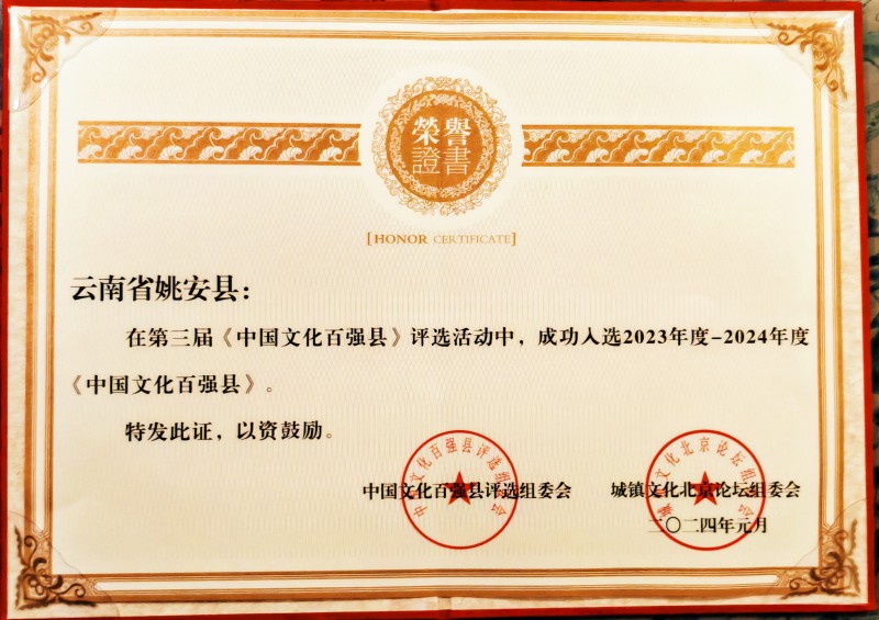 《中国文化百强县》评选旨在发现、褒奖、传播、展示中国(大陆)真正有传承、有文化的县级行政区,两年举办一次。作为本届入选县级行政区,姚安县受邀作为嘉宾出席本届盛会。