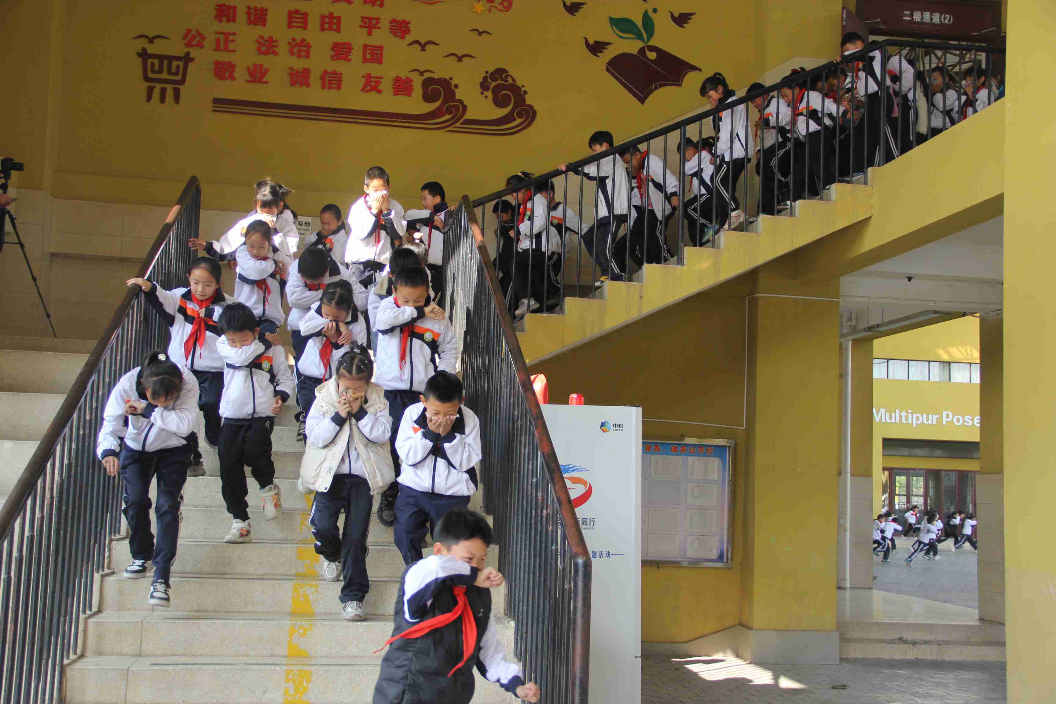 一分钟后,警报短暂停止,广播随即下达疏散指令。各班级教师迅速组织学生按照预定的疏散路线,向中央广场有序撤离。学生们用手捂住口鼻,保持低姿前行,避免吸入烟雾。在楼梯、走廊等关键位置,均有教师值守,确保疏散过程安全有序。全体师生仅用2分41秒,便安全抵达操场集合。各班迅速清点人数,并向总指挥报告,确保无一人遗漏。