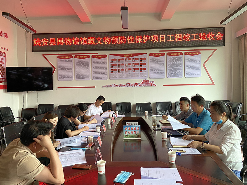 此次验收专家组现场查验了博物馆展厅文物陈列柜改造提升和恒温恒湿设备配置运行情况,展厅、文物库房空气净化设备、加湿除湿设备、恒温储藏设备、文物囊匣质地质量、文物储藏柜架配置和运行情况,听取了项目建设情况的汇报,审阅了项目验收资料。专家组一致认为,该项目的实施,有效地改善了姚安县博物馆库房文物和展厅部分文物的保存环境,达到了馆藏文物预防保护的预期目标。并建议项目实施单位要不断加强设备运行监测,总结经验,促进项目成果利用,该项目顺利通过了专家组的最终验收。